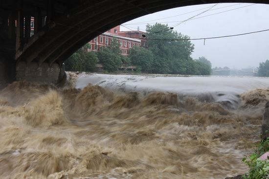 6月5日,湖南省娄底市涟钢大桥下面的洪水漫过大坝。IC 图