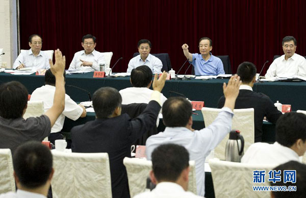 会议室里,大家争相发言。温家宝一共听了9位企业和协会负责人的发言。大家普遍反映,近年来劳动力、原材料价格上升和人民币升值,造成外贸企业利润下降,生产经营困难,希望政府采取措施帮助企业渡过眼前的困难。温家宝仔细倾听,不时插话,记下发言要点,和大家交换意见。