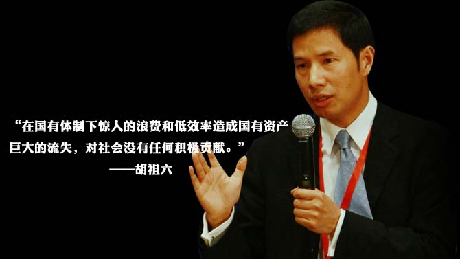 "国有企业恰好是政府和市场边界高度模糊的地方,带来很多不良的后果,具体表现为国企效率低下,竞争力不强,各种垄断危害了公平竞争,妨碍了市场经济的发展,压抑了创新,导致很多腐败。同时造成各种经济问题,表现为经济结构失衡,低效率,重复建设、产能过剩,导致腐败,都在国企里面能够看到。"胡祖六在接受凤凰财经专访时提到。