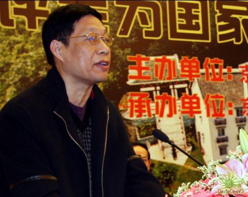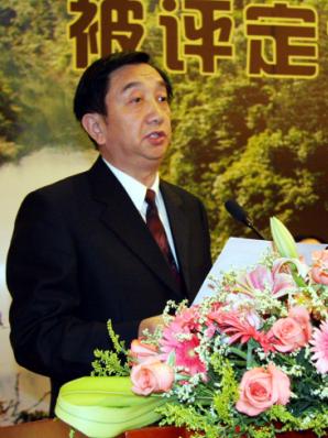 国家旅游局全国旅游景区国家质量等级评定委员会荆门市绿林山景区评审组组长李嘉林在会上发言
