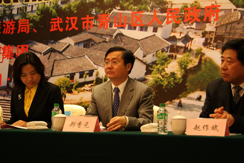 武汉市委常委、常务副市长袁善腊发表热情洋溢的讲话。湖北广信集团董事局主席、总裁赵作斌发言时,介绍了绿林山风景区旅游特色及优惠政策。