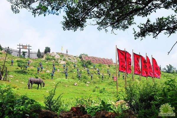 绿林寨景区是国家级AAAA旅游景区绿林山景区的核心景区,是公元17年新市(今京山)人王匡、王凤领导绿林起义的策源地,也是汉光武帝刘秀的发祥之地,史载“光武创基,兆于绿林,卒能龙飞受命,中兴帝业”。绿林寨是“绿林起义”时5万多人屯兵操练的处所,南北两城(寨)至今仍完整保存,整个寨内野菊成片,凉风习习,四季山泉涌流,是消夏避暑的理想之地。绿林寨景区现有骆驼峰、汉天门、打鼓石、树化石、火山口等诸多自然景观,也有两王洞、古城墙、古汉梯田、子陵庐、王匡帅帐遗址等历史遗迹,还有烽火台、点将台、跑马场、射箭场、哨楼、演武场、帐篷休闲等众多参与性旅游项目。