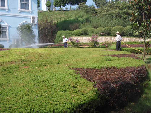 据绿化科主管肖亚全介绍,针对这些自然灾害,绿化科全体人员合理安排作息时间,避开高温,重新栽培花卉植物。同时,树木修剪,杂草清除,新草坪的种植及暑期树木的维护等工作也进行的如火如荼。这些繁杂的工作要求在开学前全部完成,并要为迎新准备各类盆栽植物,物业部绿化科将力争在开学前以一个清新、亮丽的环境、焕然一新的校园面貌迎接同学们的到来。