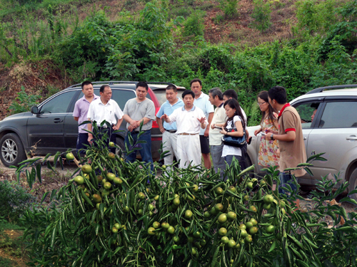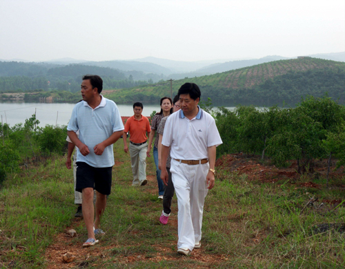 在生态农庄有关领导的陪同下,赵作斌总裁和专家们一路徒步行走,边走边看边议,先后视察了生态农庄的万亩优质核桃基地、千亩金梅枣基地、百亩盆景花卉基地、屈家垱天然养鱼场及清澈小富水河畔建设等项目。并就生态农庄的建设与规划问题进行了广泛地交流。