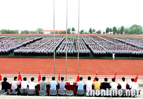 校党委书记郑鹏飞教授在开营仪式上作军训动员讲话。他首先代表学校向来自全国各地的2010级新生表示热烈的欢迎和亲切的问候,向承训部队空军雷达学院致以崇高的敬意。