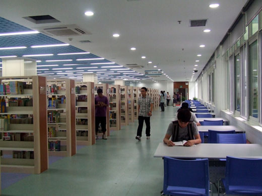 规模最大。该馆建筑面积3.2万平方米。藏书最多。馆藏图书140万册。座位最多,阅览座位5000个。功能最全。该馆设计集藏书、借书、阅览“三位一体”,学生在书库借书后可就地阅览。该馆还建有学术报告厅、多功能厅。仅多功能报告厅3D电影系统就投资了100多万元。馆内还设有咖啡厅,每个图书室辟有休闲区,可让师生消除书倦之累。配置最优。该馆配备有先进的电子信息资源、万方数据库、维普数据库、人大复印资料数据库、超星电子图书数据库、起点考试系统数据库、ZLASⅡ文献管理系统,为全校师生提供便捷的文献检索服务。环境最美。该图书馆除了有楼顶花园外,每层都建有空中花园,各种花草植物争奇斗艳,小桥流水日夜无倦。图书馆营造舒适的环境,给人爽心悦目之感。(完)