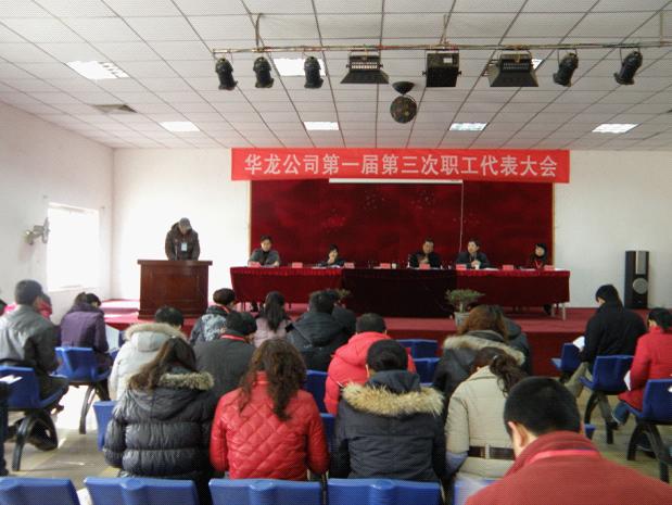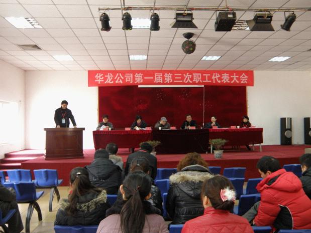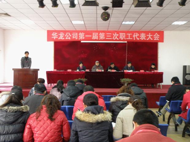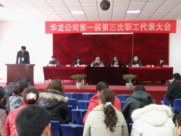 大会在雄壮的国歌声中开幕,副总经理黄楚华同志致开幕辞。他表示,在2010年,在集团的领导下,华龙公司取得了骄人的业绩,圆满完成集团下达的各项工作,同时公司制定了争取三年上市、开发新品种及组建自已的营销网络等新目标。公司工会在过去的一年通过开展职工活动,丰富了职工生活,同时创建了安定和谐经营环境。黄总希望本次召开的职工代表大会,能总结过去一年的工作,展望公司的未来,并恳请各位代表珍惜代表资格,多提宝贵意见,不负众望,畅所欲言,为企业发展积极建言献策,出谋划策