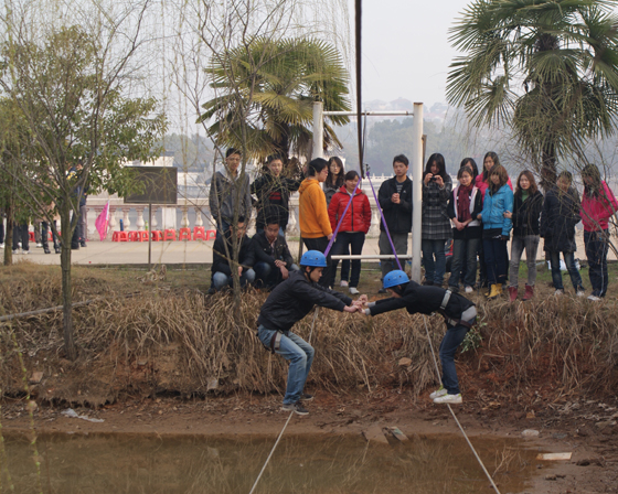 本网讯(记者 刘明杨 宣传员 赵青 摄影报道)空中断桥、携手并进、鼓动人心、挑战150、能量传递、七巧板……3月7日上午,来自武汉科技大学中南分校商学院的首批学生100余人在民族村拓展基地开始了为期3个月的提升性拓展培训。湖北华创素质拓展培训有限公司以强大的培训团队、丰富的拓展项目等赢得了学生们的拍手称好。
