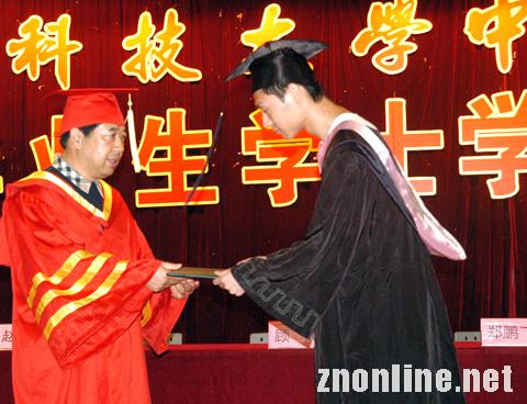 随后,学士学位颁发仪式正式开始,学校领导亲手为每一位学士学位获得者拨正流苏,赵校长为其颁发学位证书,并与他们合影留念。身穿学士服的同学们脸上洋溢着幸福而甜蜜的笑容,他们用心铭记了这激动而难忘的瞬间。