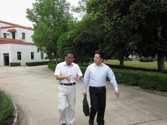 华龙公司副总经理罗军向张万军先生(右)介绍厂区生产情况