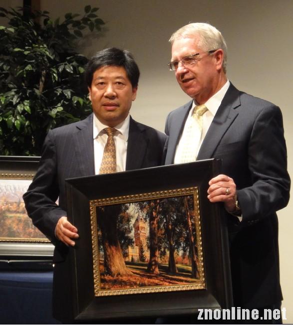 会议期间,犹他州州长亲自为赵校长送上一幅字画,寄予着对中美合作办学的关注和支持,赵作斌校长也盛情邀请犹他州州长和犹他州立大学代表团再次来武昌理工学院进行交流访问。