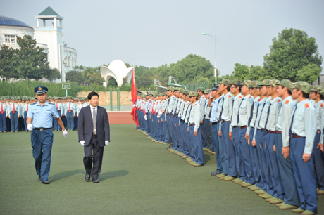 广信科教集团有限公司董事局主席、总裁,武昌理工学院校长赵作斌教授检阅