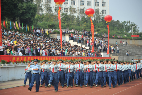 在分列式表演中,经过18天的严格训练,2011级的3700余名新生以矫健整齐的步伐,充满朝气地依次通过主席台前,接受检阅。“追求卓越,走向成功”,同学们以嘹亮的口号,向领导、首长和老师们汇报军训成果,充分展示了武昌理工学子奋发向上、团结协作、追求卓越的良好精神风貌,赢得在场师生的热烈掌声。