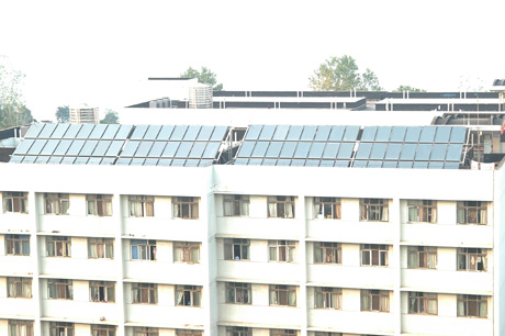 本网讯(宣传员 朱道刚 记者 鲁信 报道)为响应国家节能减排号召,更好地满足学生使用热水洗澡等需求,近日,由后勤服务总公司投资289万元建设的学生公寓太阳能热水工程全面启动,预计12月中旬竣工。