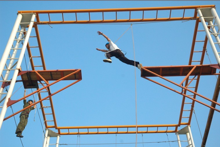 培训刚开始,带队培训师通过一系列的热身活动,给今天的培训营造了一个轻松愉快的氛围。8点整,全体学员被分成2个小队(擎风队,海盗突击队)参加了破冰、高空断桥、信任背摔、穿越电网、挑战150、毕业墙等项目。每个项目都有其独特的魅力,破冰打破了人与人之间的隔阂,建立相互信任基础,使学员了解何为团队,如何在里面找到合适自己的角色并快速的融入其中;高空断桥让学员在9米的高空中勇于挑战,超越自己,战胜内心那个敌人;信任背摔使学员明白个体与团队之间的信任与责任,信任队友,敢于承担;穿越电网、挑战150、毕业墙让学员明白了在团队协作互助的重要性。