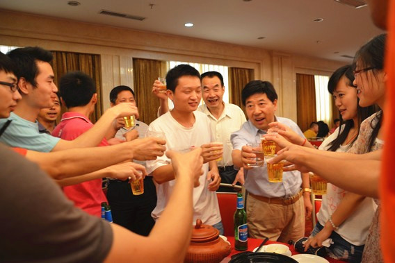 在宴会中,赵校长和各位校领导来每一张桌子前,向毕业生们挨个敬酒,同学们则是照相的照相,向老师们“取经”的“取经”,场面热闹非凡。刚刚考上中南民族大学研究生的毕业生张新平感慨地说:“本想向其他学校的学生那样静悄悄地走,没想到学校设宴欢送我们,将来无论走到哪里,我永远不会忘记母校的培育之恩。”(完)
