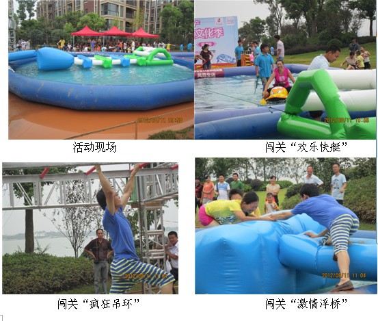 为做好水上冲关联谊活动组织工作,后勤公司提前与保利地产承办方取得联系,确定时间、地点,并安排集团专场比赛,同时将参加的集团各部门职工及家属分组分项,告知活动注意事项及比赛规则。在集团工会与公司领导大力支持下,集团参赛者共计36人于8月11日上午9时30分共同乘坐校车前往比赛现场。活动分9组,每组进行4个关卡的闯关,如智勇狩猎、欢乐快艇、激情浮桥、疯狂吊环,活动现场热闹非凡。