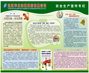 本网讯(通讯员 刘芳 丁冠军 报道)为加强公司安全生产管理和监督工作,保障公司及员工生命财产安全,配合企业安全生产标准化的安全生产宣传工作,加强安全生产基础知识教育,增强广大员工的安全意识,华龙公司近期开办了《安全生产宣传专栏》,广泛宣传安全生产方针政策、法律法规、安全生产知识,及时报道安全生产的工作动态和安全生产情况,建立了安全生产宣传教育阵地。