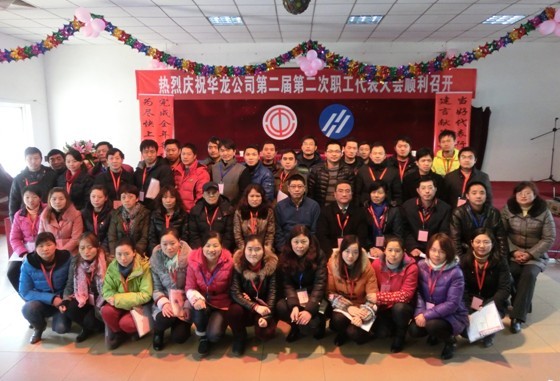 大会在雄壮的国歌声中开幕,副总经理黄楚华同志致开幕辞。他表示,职工是推动公司建设和发展的基本力量,工会是公司联系职工的桥梁和纽带,以人为本,互惠双赢。只有把职工利益与企业利益统一起来,才能充分调动广大职工的生产热情,发挥最大的能量,才能使企业达到事业的巅峰。通过过去三年的努力,第一届华龙工会委员会为职工利益做了大量工作,通过多种活动,丰富了职工生活,疏通了上下沟通的渠道,维护了职工权益,为生产环境的安定和谐作出了不可磨灭的贡献。