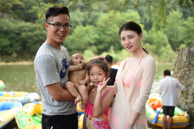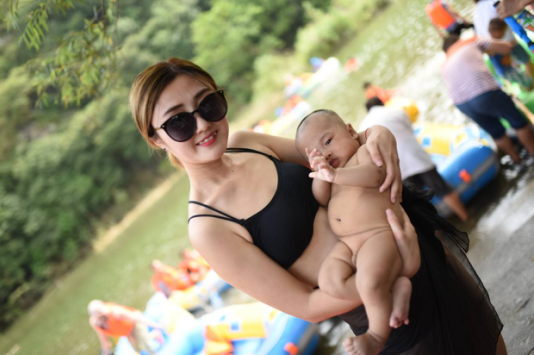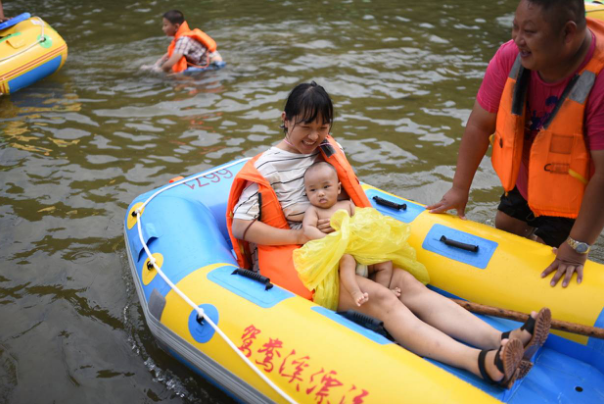 宝宝的妈妈告诉记者,他们一家从武汉过来,夏天气候比较炎热,又不忍心将最小的宝贝留在家里,在网上查找得知绿林山风景区鸳鸯溪漂流是湖北省内唯一老少皆宜的安全系数极高的漂流点后,萌生了全家过来漂流消暑的想法。