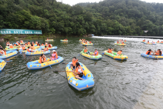 近日,集团绿林山鸳鸯溪漂流景区迎来了史上最年轻的漂流客人,只有四个月大!打破了之前2岁漂流宝宝的记录。