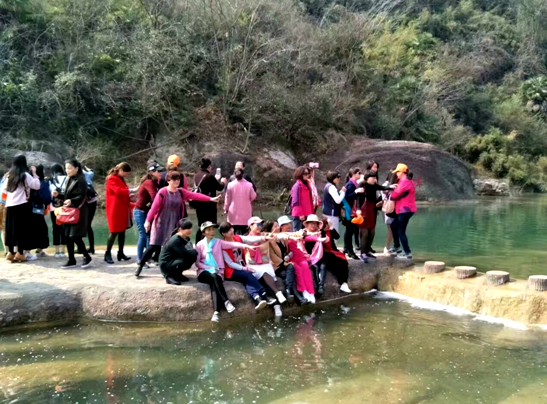 这是发生在绿林山风景区“三八”妇女节当天的真实一幕。当日,景区美人谷、绿林寨两大景点车流如龙、游人如织,在轻拂的春风和荡漾的春水掩映下,来自武汉、十堰、荆门、河南、湖南、安徽等省市的接近2万名团队和自驾游客寻芳而至、觅春而来,欣赏着美丽壮观的溪流瀑布和生机勃发的花草树木,呼吸着清新宜人的春天气息,共同开启了绿林山景区鸡年旅游的开门红。