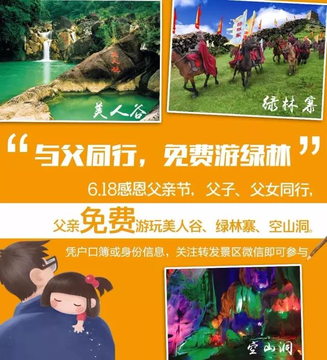 活动规则:父子/父女同行,凭户口簿或有效身份信息并关注转发“绿林山风景区”微信图文,父亲可获得免门票资格。