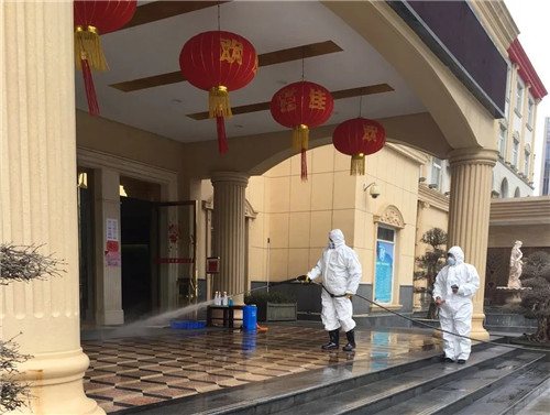 广信国际大酒店在门口专设体温监测处,在各层楼配备免洗消毒液、洗手液,供医护人员使用,并对公共区域进行定时、全面、彻底消毒,竭尽全力为援汉医护团队提供及时、周到的后勤服务。