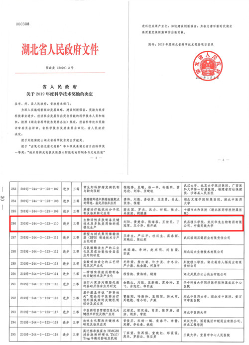 近期,湖北省人民政府公布了2019年度湖北省科学技术奖励项目,由广信科教集团旗下武汉华龙生物制药有限公司、武昌理工学院,以及中南民族大学共同完成的“生物活性多肽制备关键技术及多肽类药物的规模化生产”项目荣获2019年度湖北省科技进步奖三等奖。据悉,湖北省科学技术奖励项目每年评选一次,经过武汉市科技局初审、专家评审、技术答辩、复审、公示等多环节,再由湖北省科学技术厅统一评审、省政府批准发布,该奖项代表着科技创新及应用领域的较高荣誉。