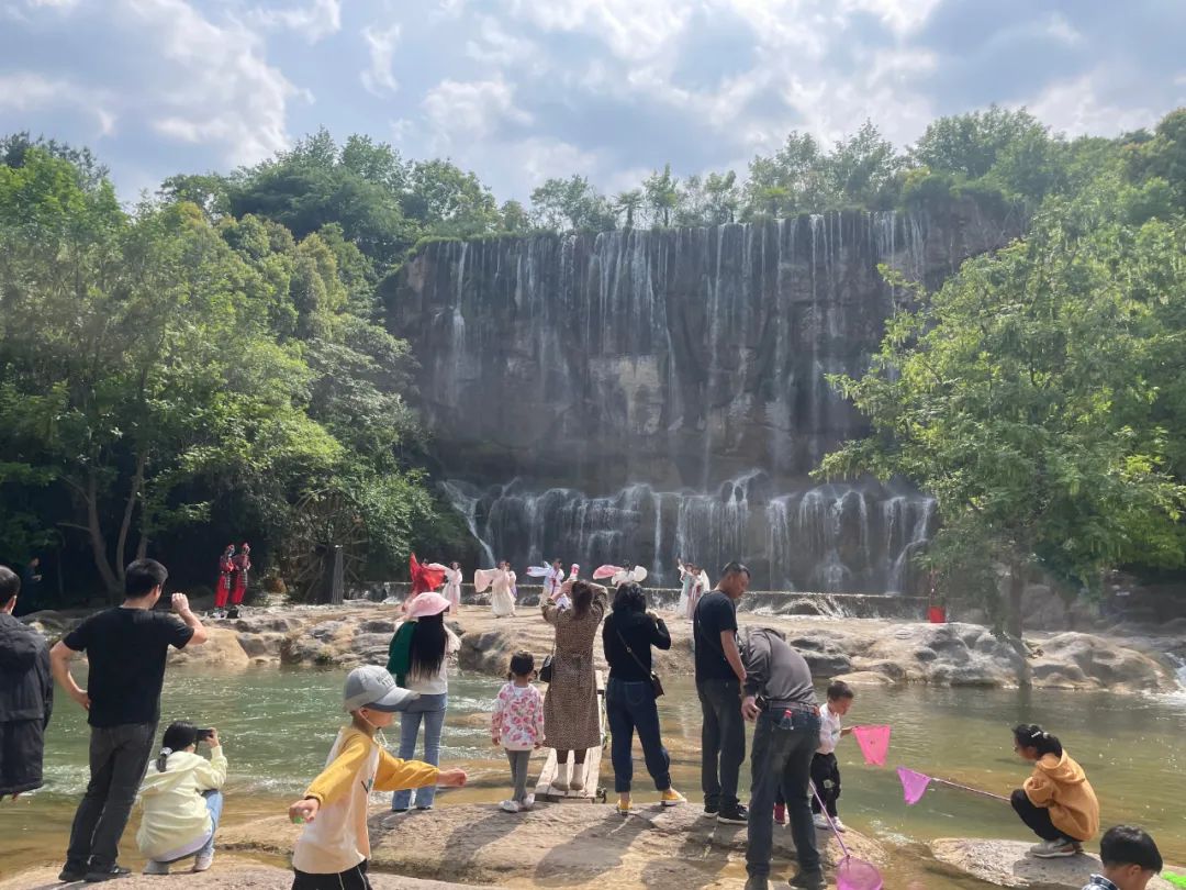 随着绿林山游客中心的正式开放、鸳鸯溪漂流五一盛大开漂,景区更是游人如织,旅游接待秩序井然,假期游客接待量单日人次破万。