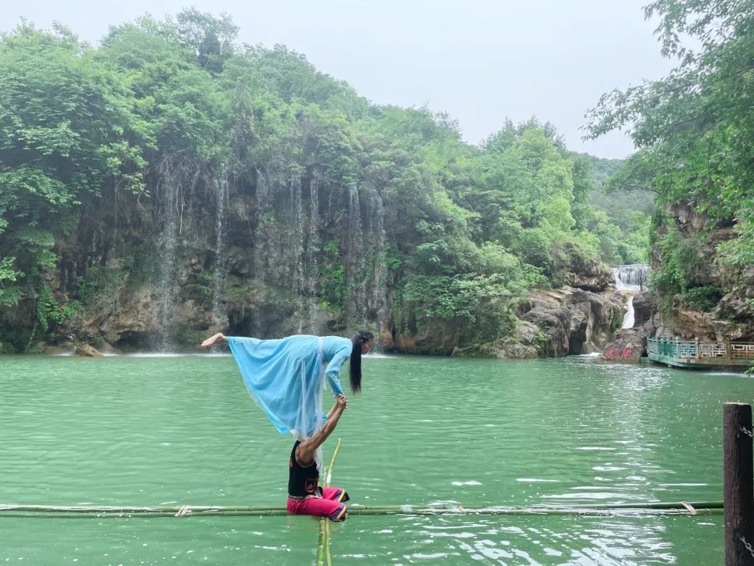 文化与自然的完美融合,古与今的碰撞!一袭古装,仙气飘飘,画面绝美!表演乘风破浪、倒退、转身、绕弯、换竿等绝技,颇有“一苇渡江”之妙。