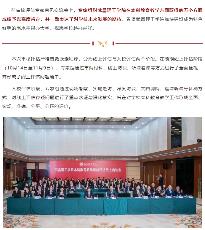 头条|武昌理工学院接受教育部本科教育教学审核评估!专家组寄望学校建成特色鲜明的高水平民办大学!