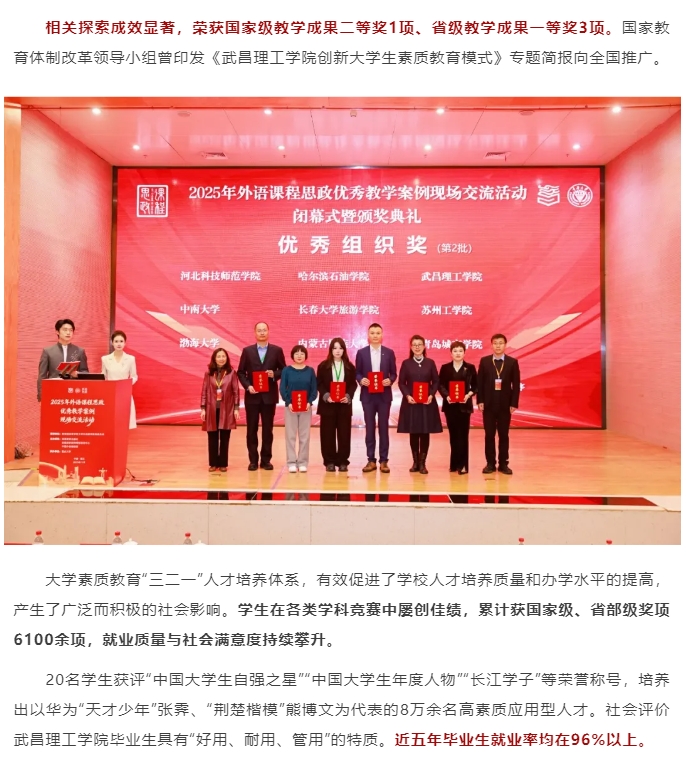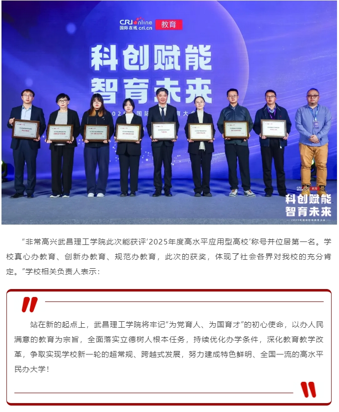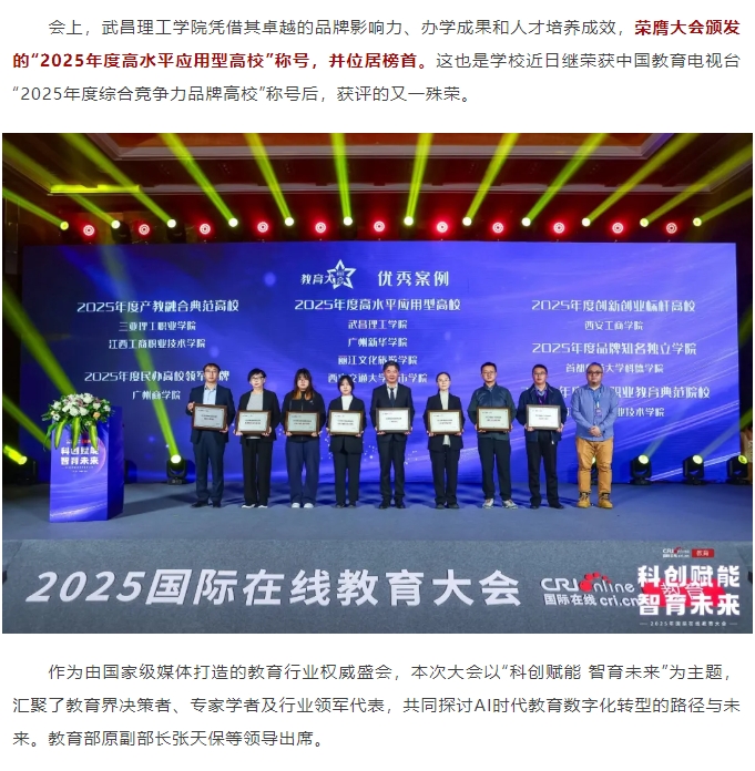 头条|武昌理工学院荣获“2025年度高水平应用型高校”并位居榜首